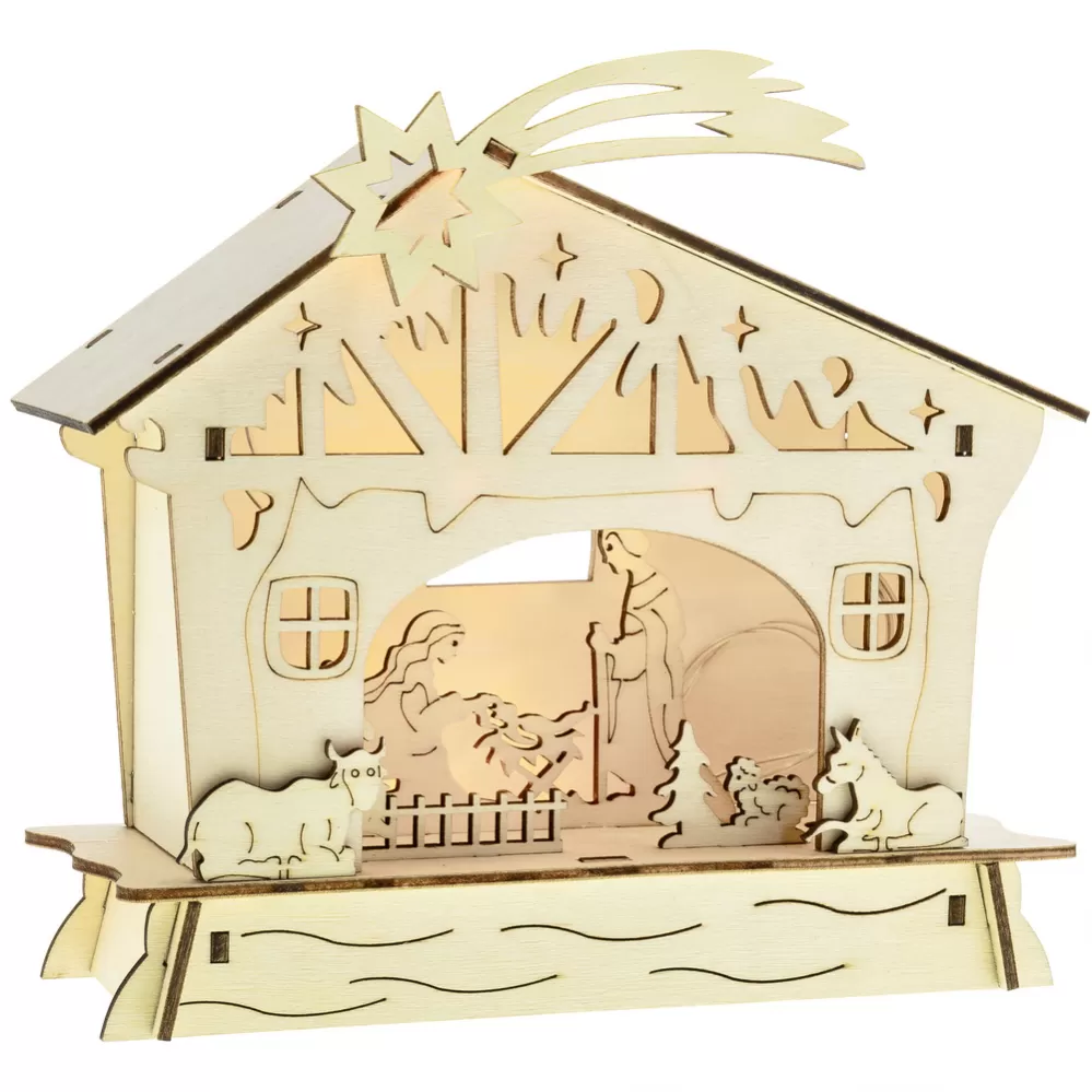 Vánoční dekorace - jesličky z dřevěné překližky 4 LED Barva světla: teplá bílá Rozměry: 18 x 6 x 17 cm Vhodné pouze pro vnitřní použití (IP 20)… Celý popis