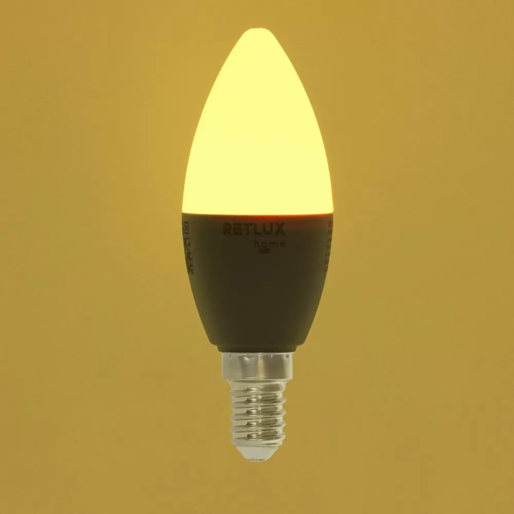 LED smart žárovka Retlux RSH 100 Připojení k běžné WiFi síti Tvar svíčka C35 Příkon 4,5W Patice E14 Napětí: 220-240V (50-60Hz) Nastavitelná barva… Celý popis